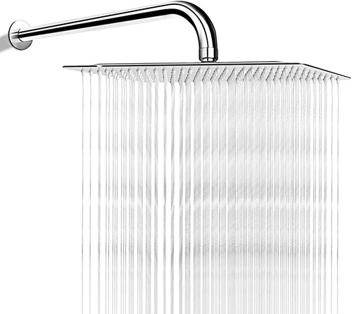 Hillstry 12 Inch Square Rain Shower Head With 15" Shower Arm