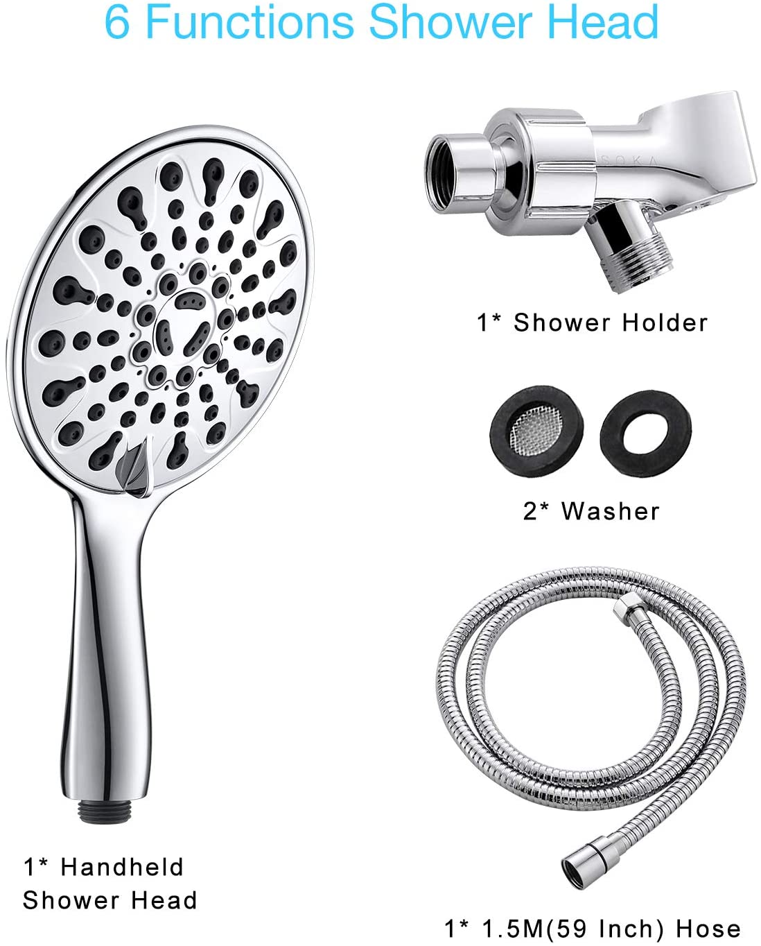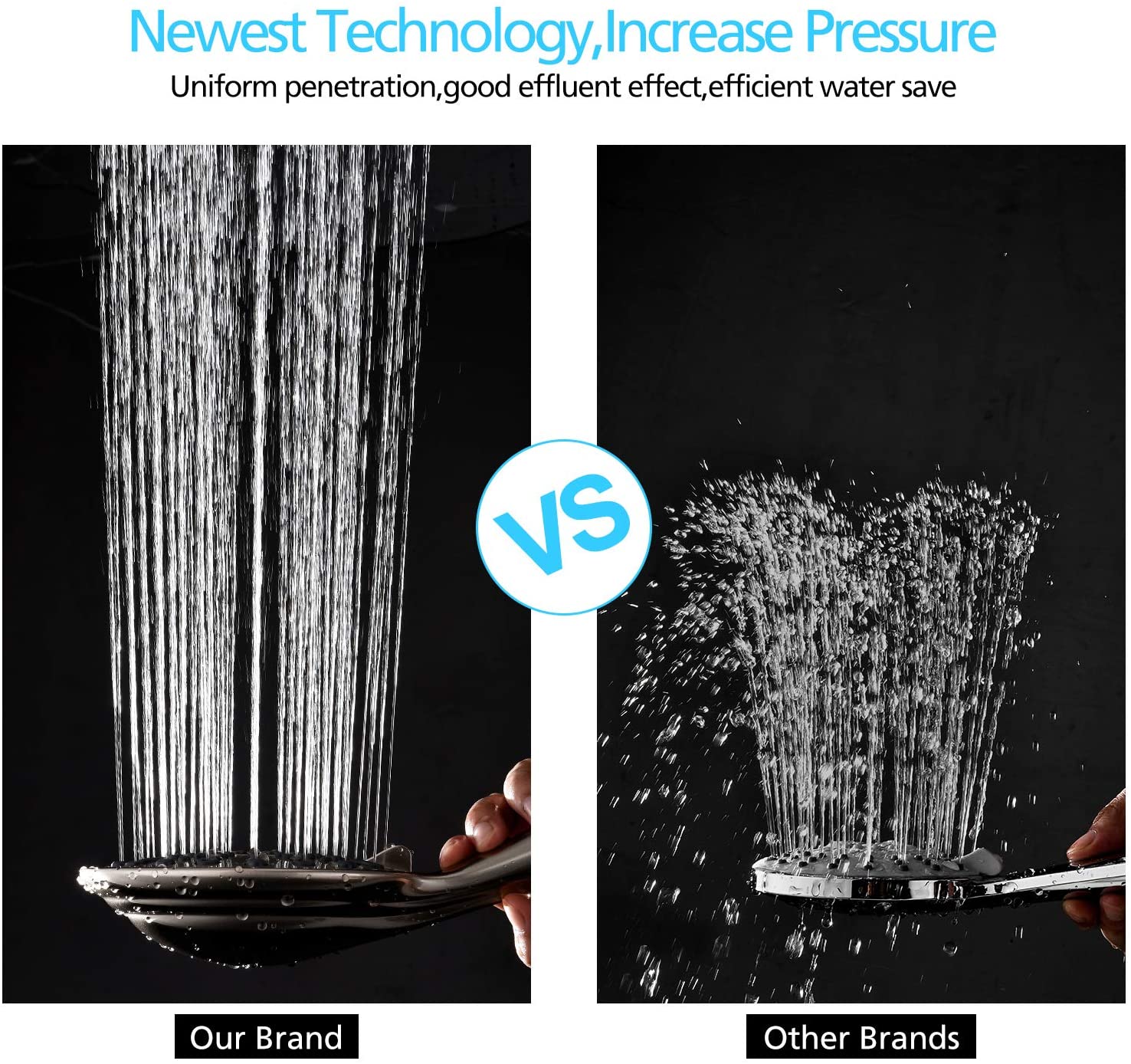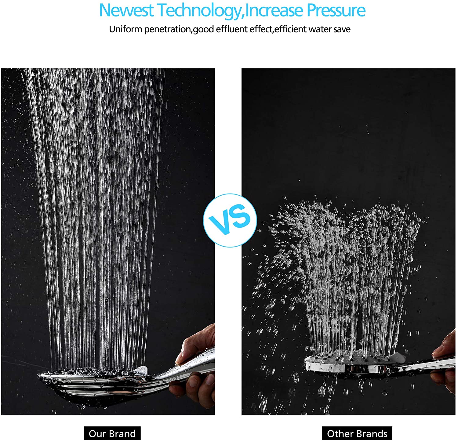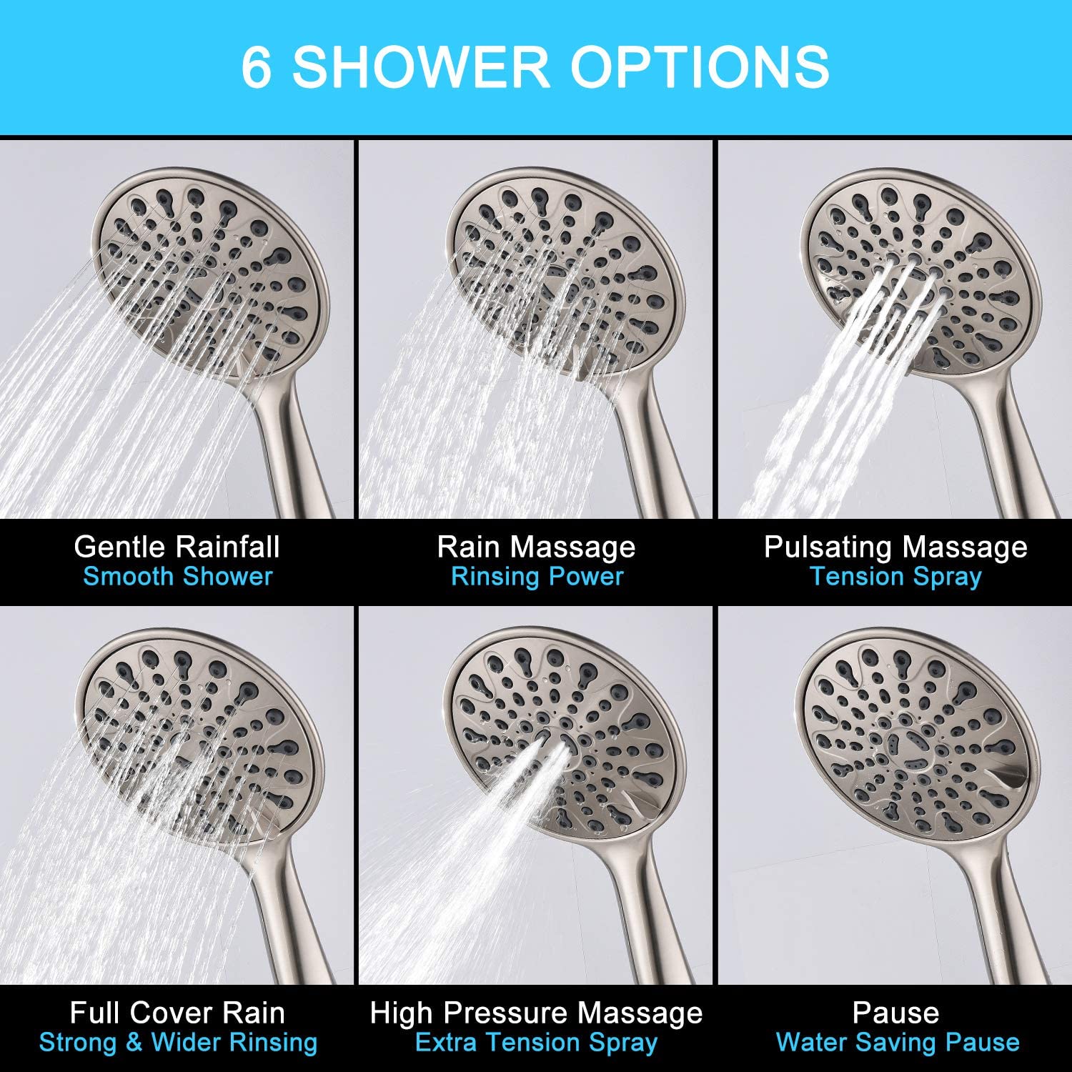 - MULTIPLE SPRAY 6 SETTINGS: The powerful and multi-functional handheld showerhead has 6 different spray patterns include Expanding Spray, Rain, Massage, Rain+ Expanding Spray, Rain+ Massage spray, Pause (Left), Pause(Right) modes which make pressure boosting effect for ultimate shower experience even at low pressure.