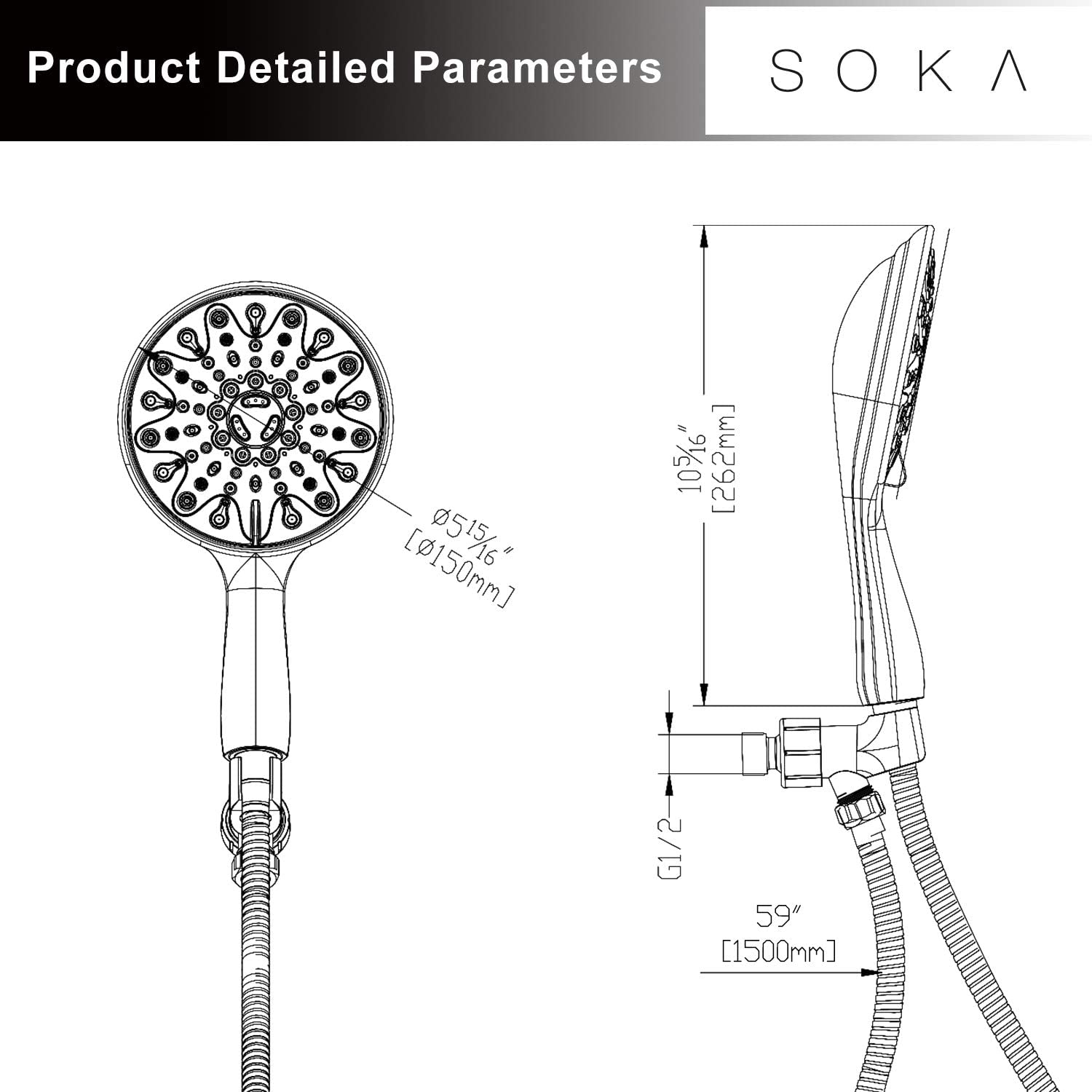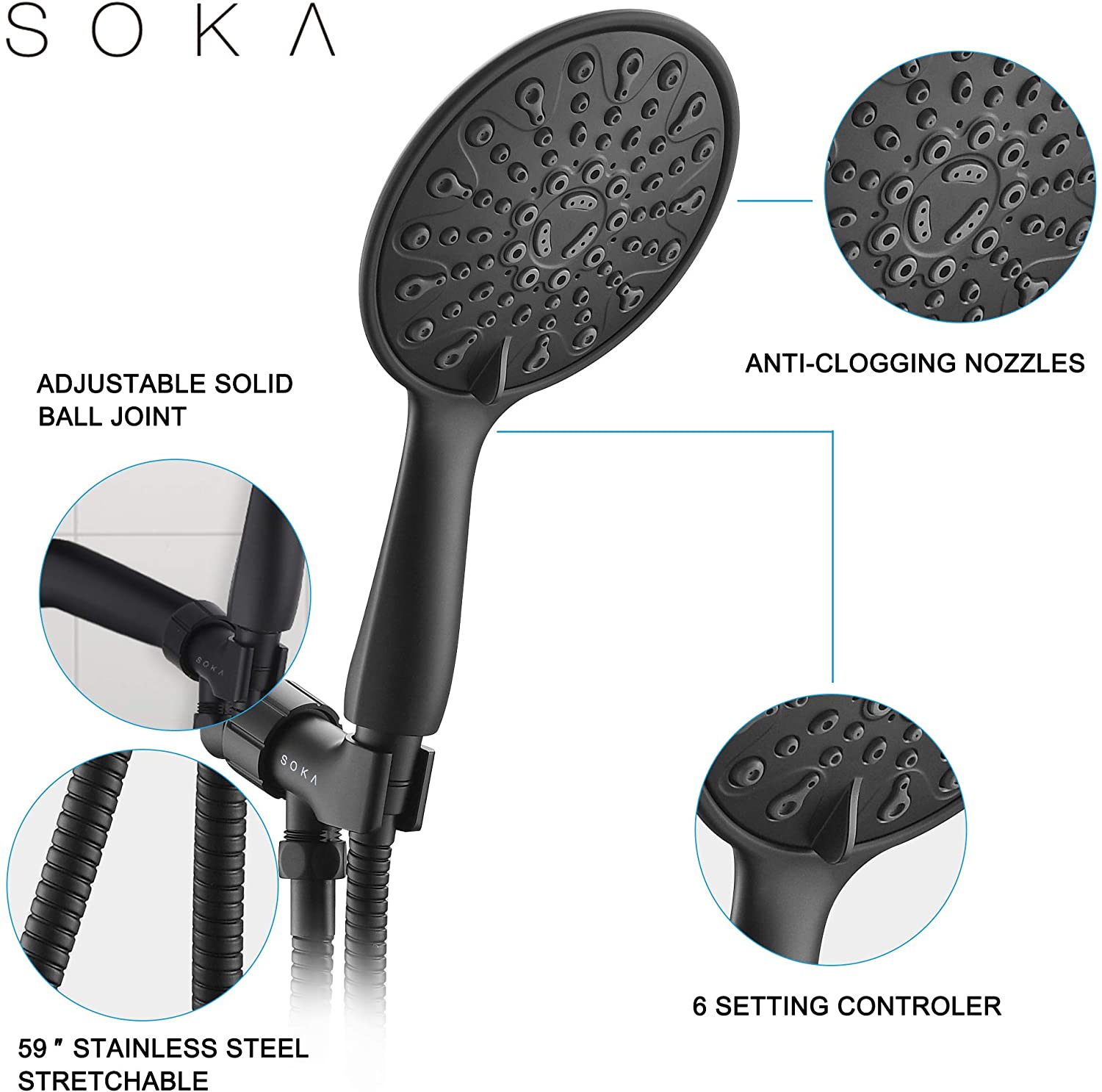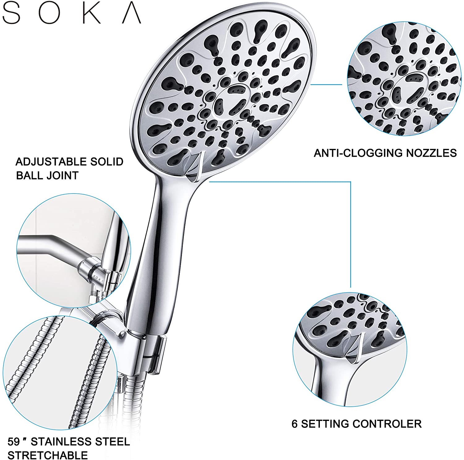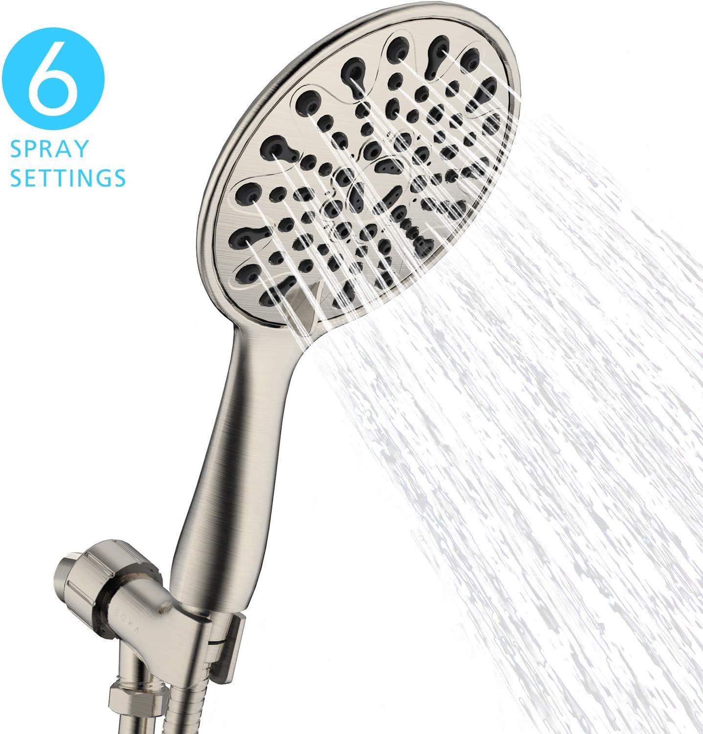 - MULTIPLE SPRAY 6 SETTINGS: The powerful and multi-functional handheld showerhead has 6 different spray patterns include Expanding Spray, Rain, Massage, Rain+ Expanding Spray, Rain+ Massage spray, Pause (Left), Pause(Right) modes which make pressure boosting effect for ultimate shower experience even at low pressure.